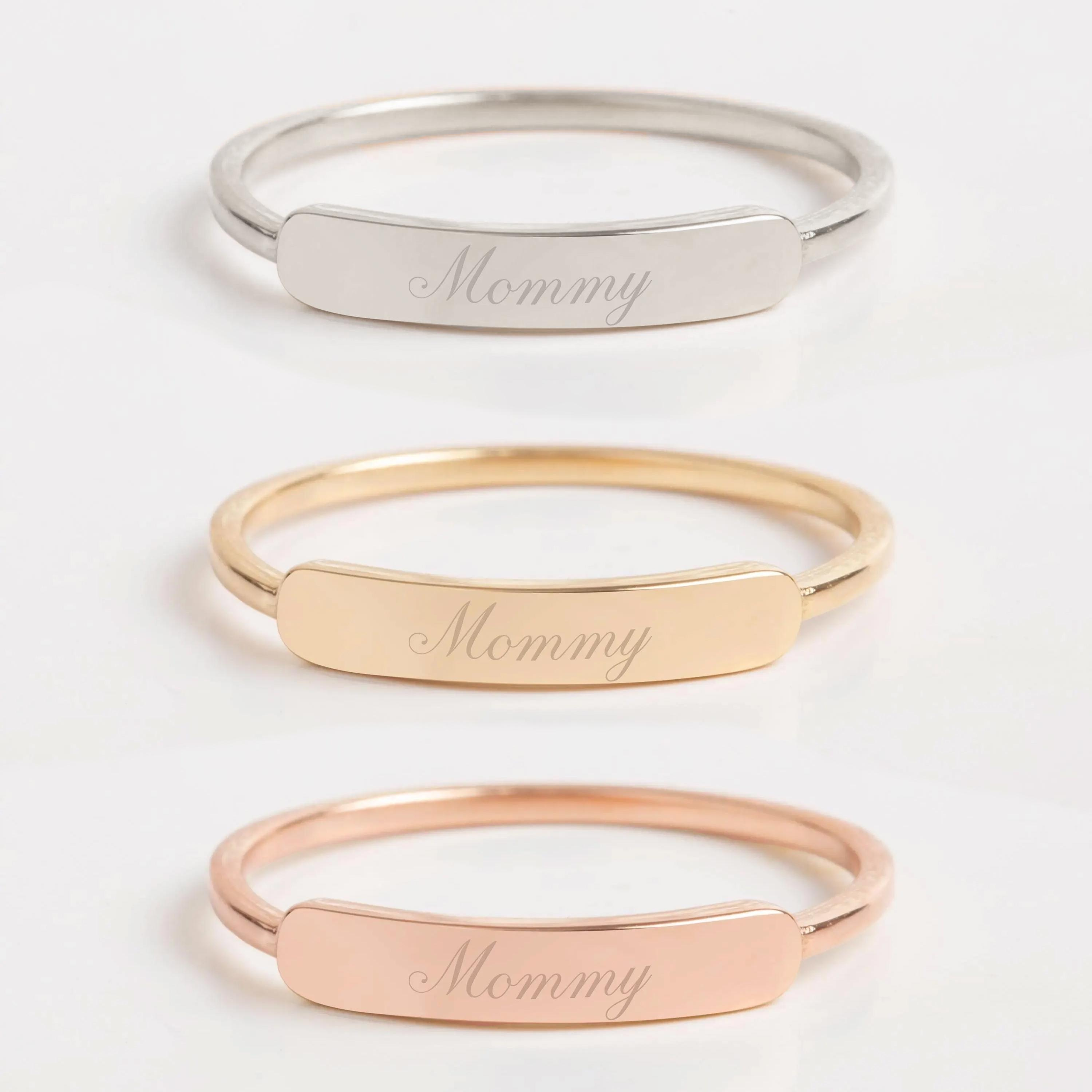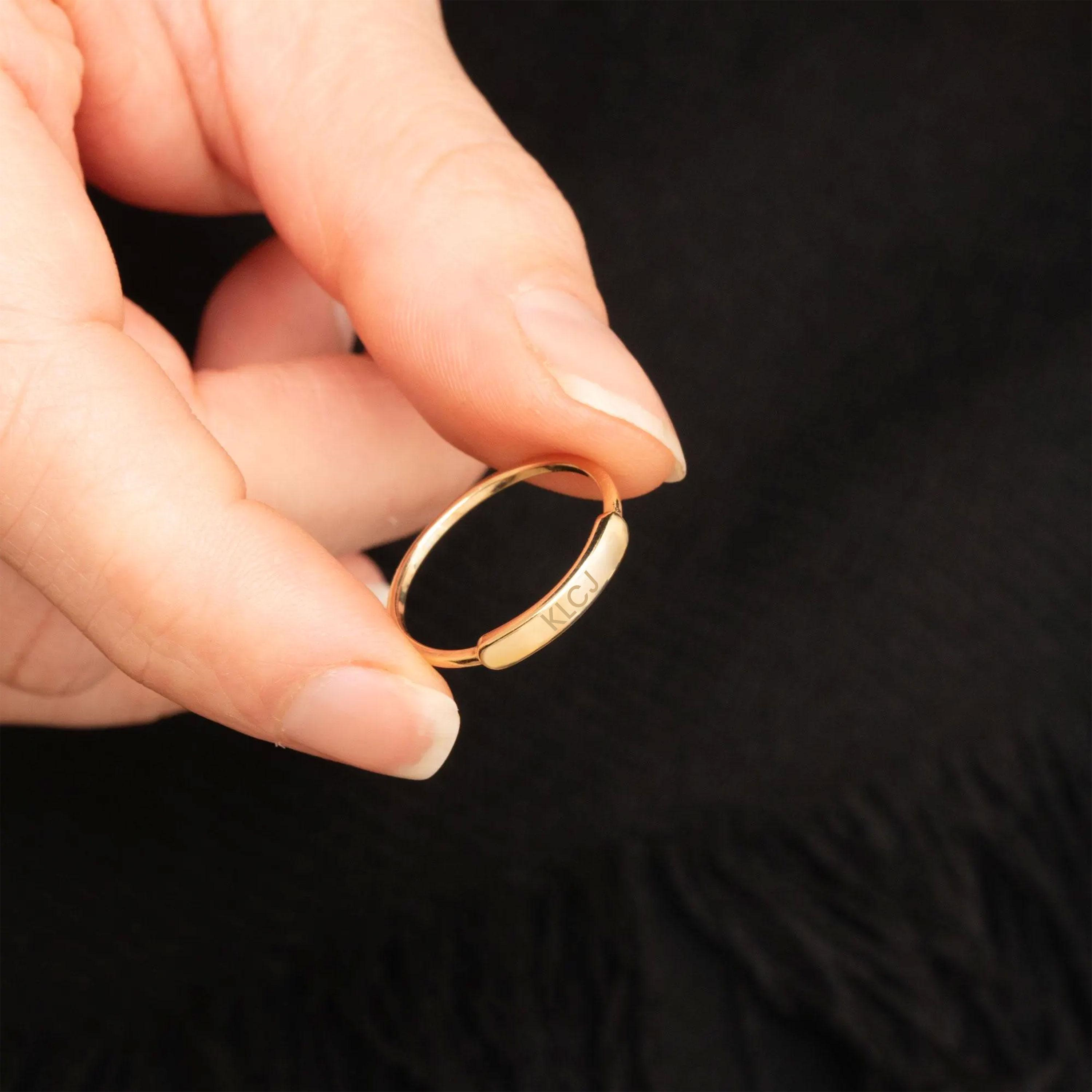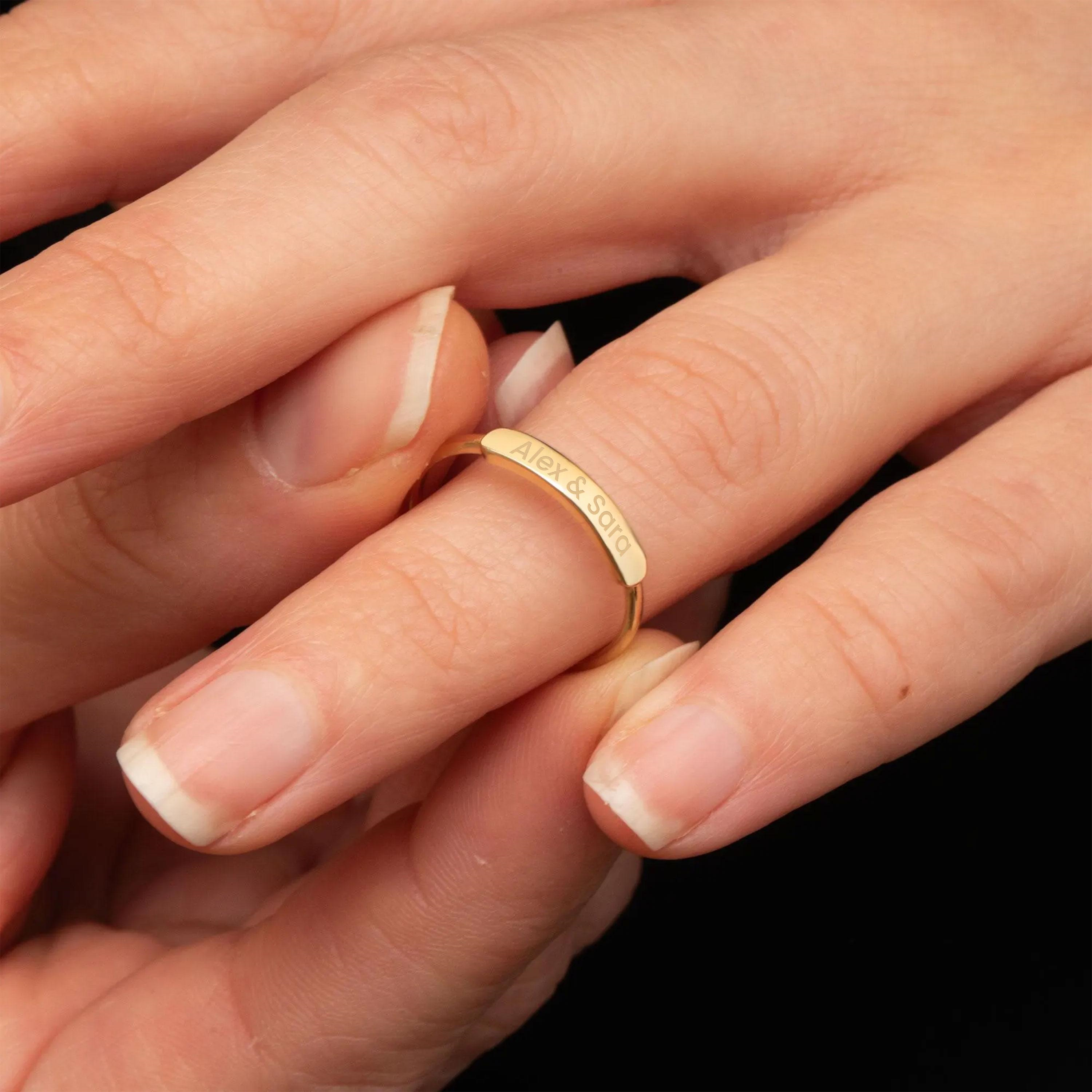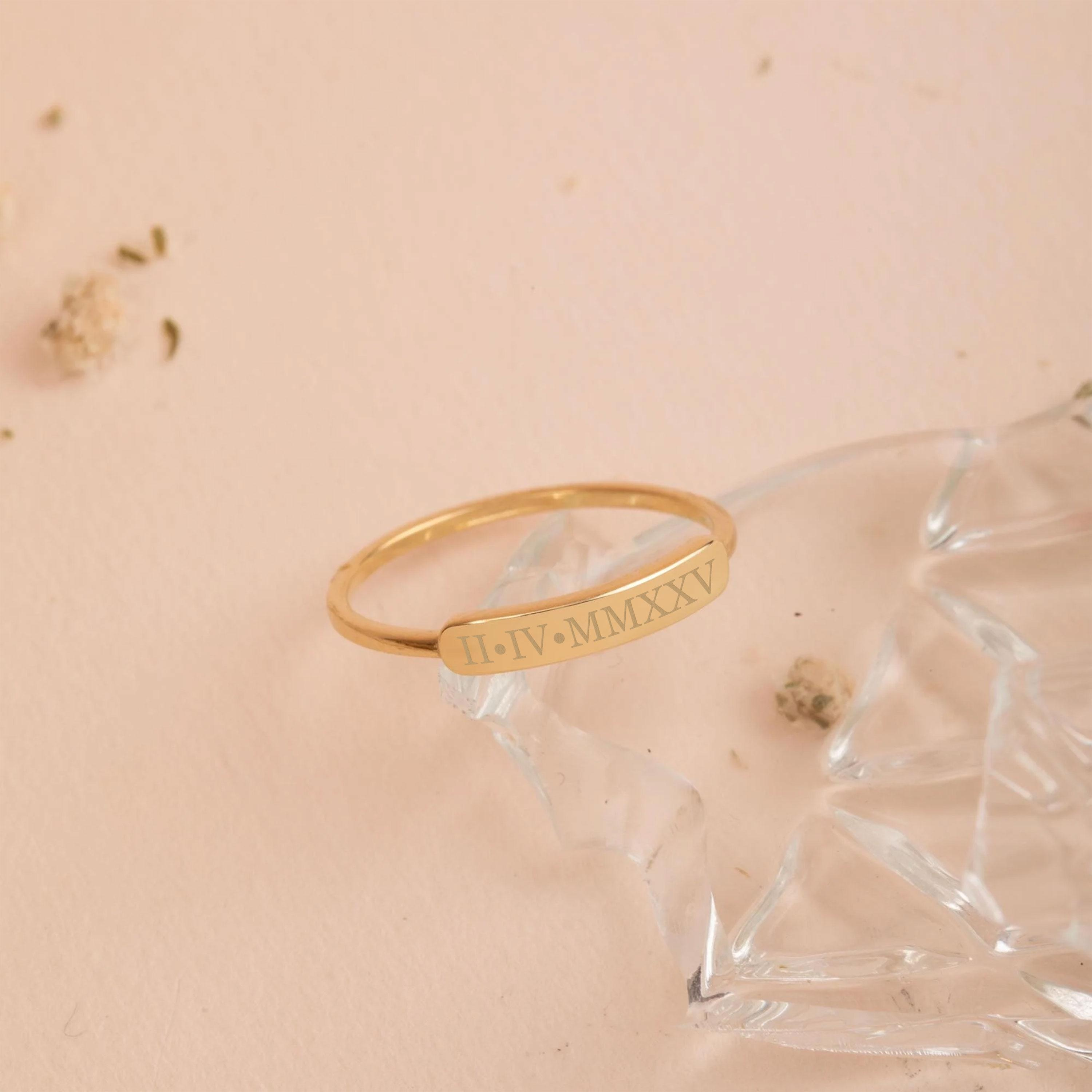 This engravable gold bar ring features a sleek and minimalist design, created to carry a personal message such as a name, date, or meaningful symbol. Its slim profile makes it perfect for everyday wear, while the clean bar detail adds a refined statement when worn alone or stacked. A timeless piece designed to hold lasting memories.