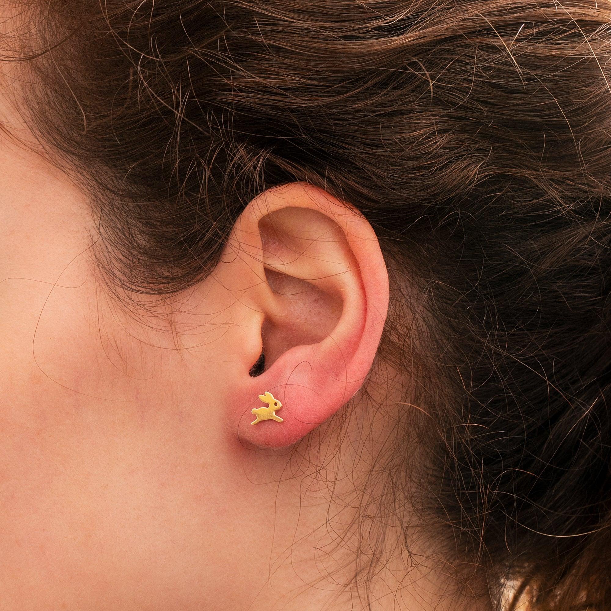 Technical Details The earrings are handcrafted. Rabbit motif size is approximately 7 × 8 mm. Push back closure is used. Minor variations may occur due to handcrafting.