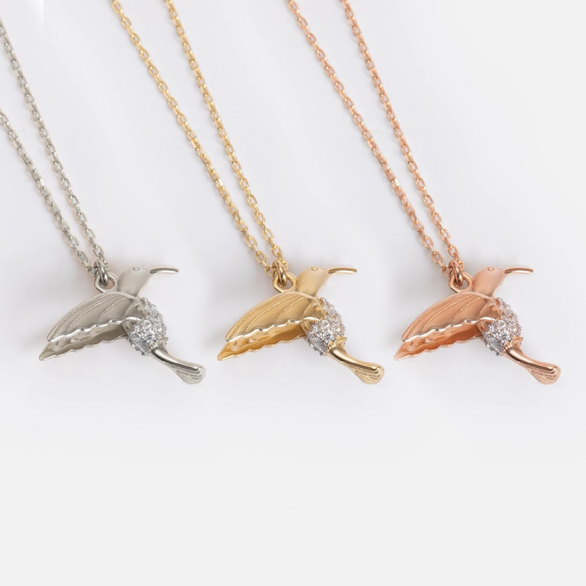 Crafted from genuine 14K or 18K solid gold, this delicate hummingbird necklace captures the beauty of nature through a minimalist and boho-inspired design. Symbolizing freedom, joy, and vitality, it offers understated elegance for everyday wear while making a meaningful gift for nature lovers. Available in yellow, rose, or white gold, this timeless piece complements any jewelry collection.