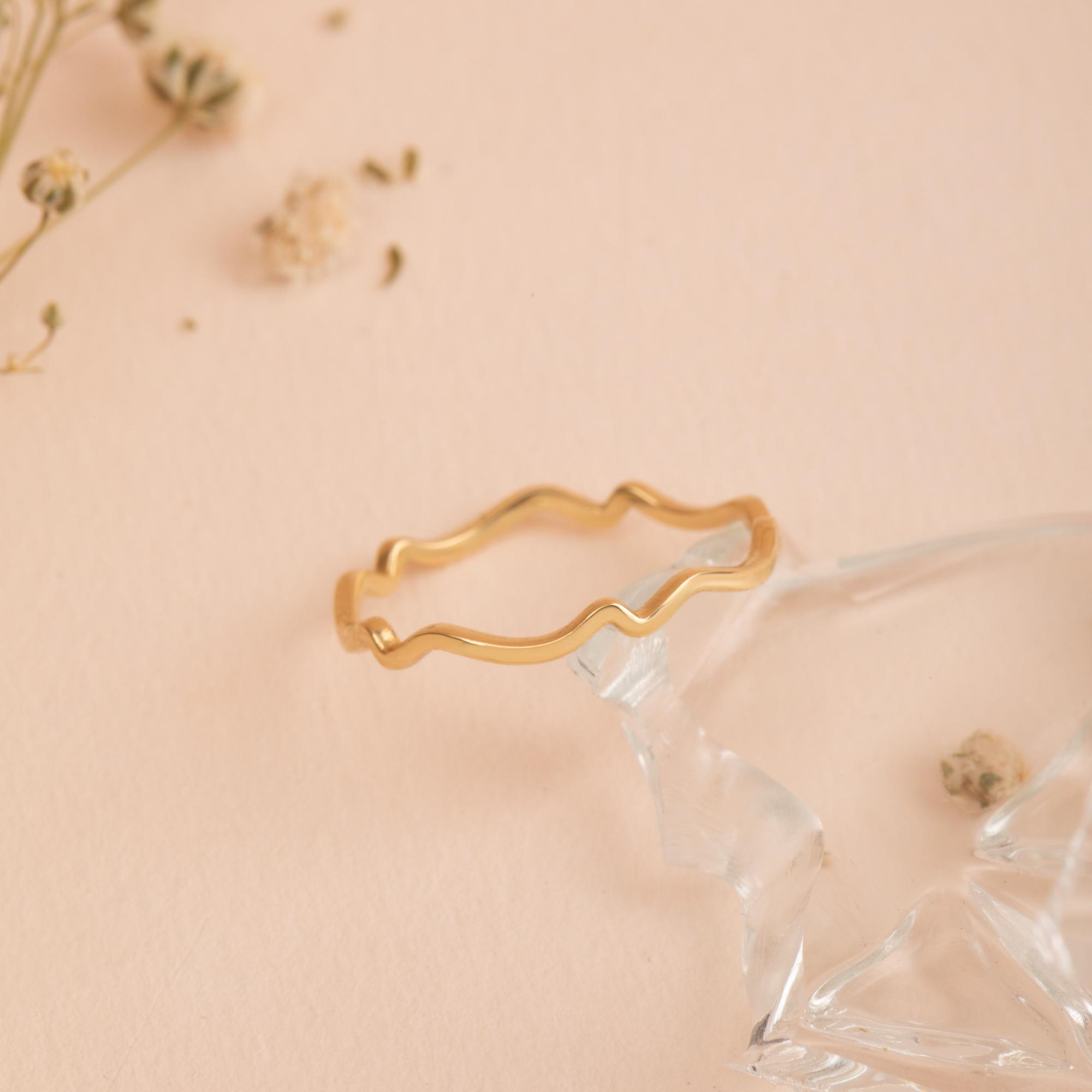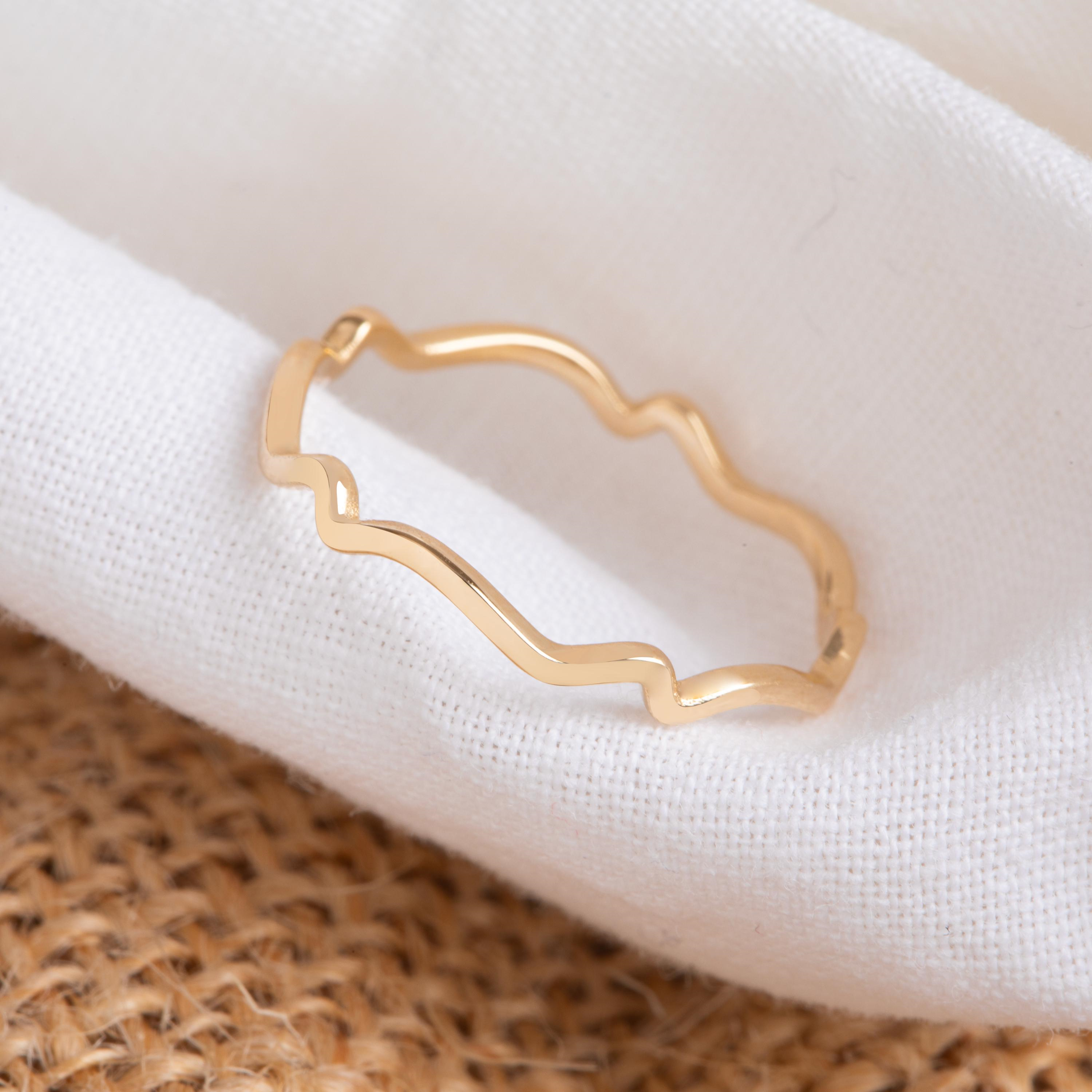 This solid gold wavy ring features an organic, flowing silhouette that reflects light beautifully with every movement. Its sculptural contour offers a modern interpretation of natural form, making it perfect for stacking, everyday wear, or as a unique alternative wedding band. Elegant, lightweight, and timeless, it blends comfort with refined design.